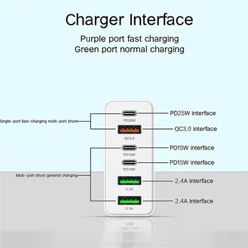 160W Multi Ports USB Type C Charger Fast Charging Phone Charger Adapter For iPhone Samsung Xiaomi Huawei EU/US Plug Wall Charger