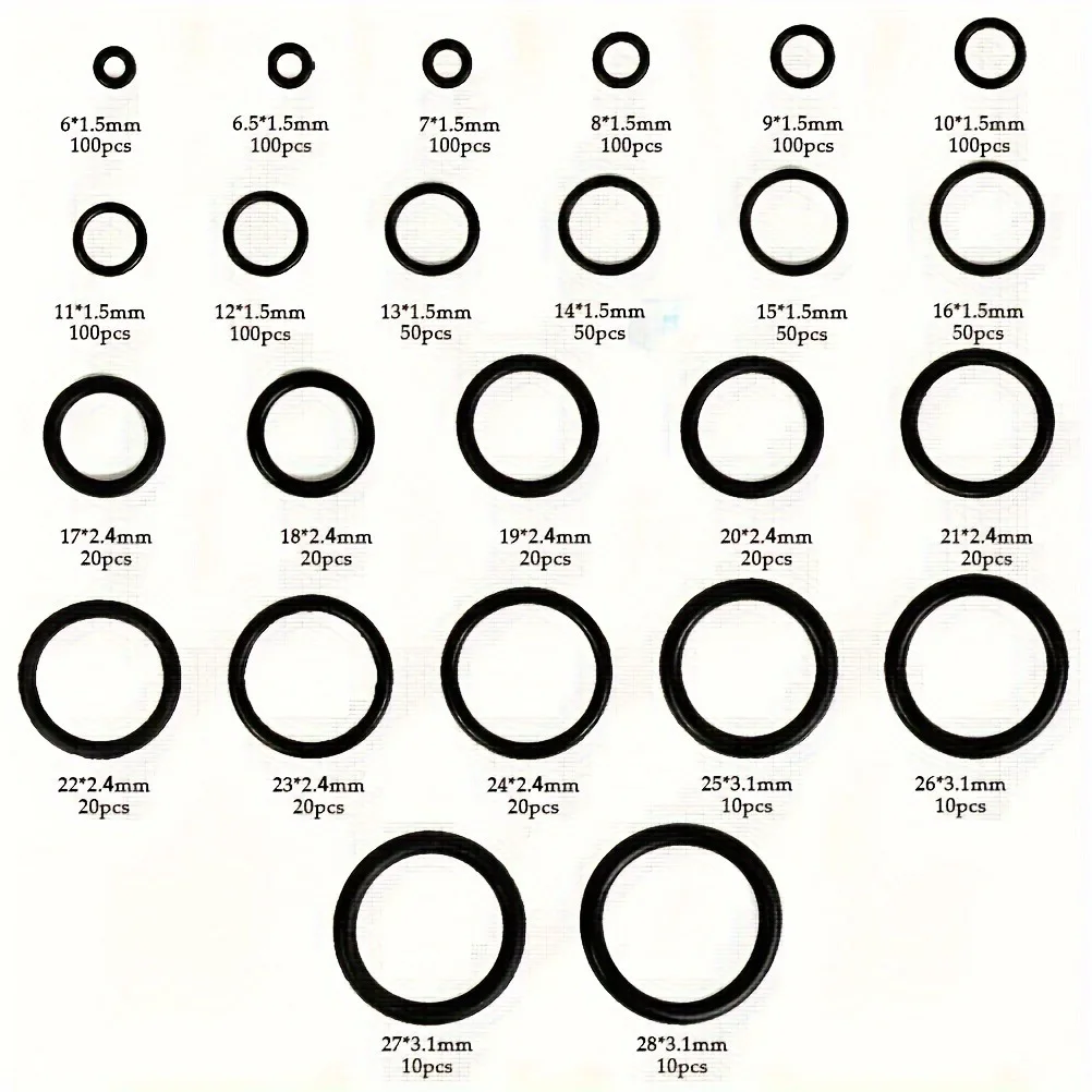 24 Sizes Black Rubber Gaskets O-ring Assortment Kits Auto Plumbing Faucet Water Air or Gas Repair Assorted Metric Sealing Washer