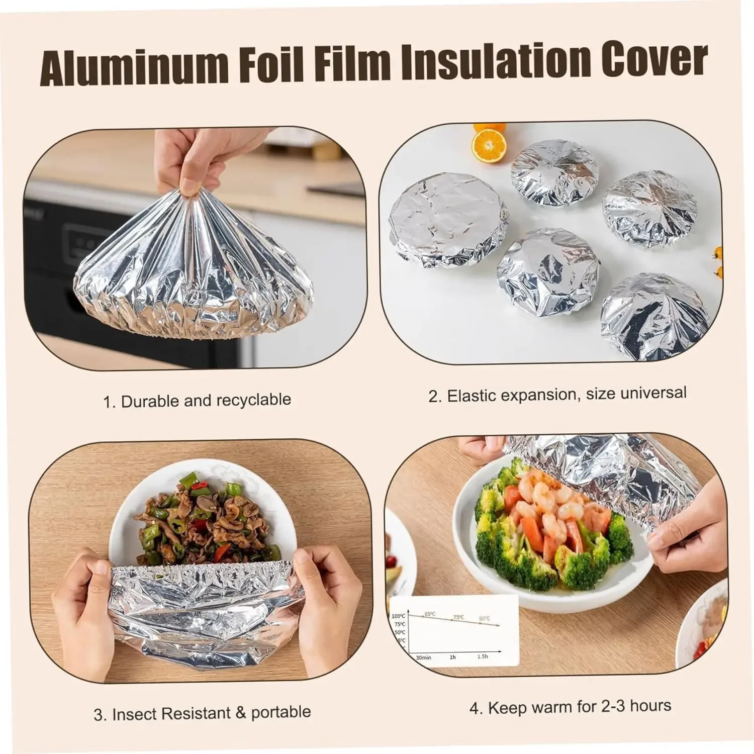 Versatile use: ideal for everyday meals, festive gatherings, or outdoor picnics, providing reliable insulation in any setting,aluminium foil insulation film,pot cover